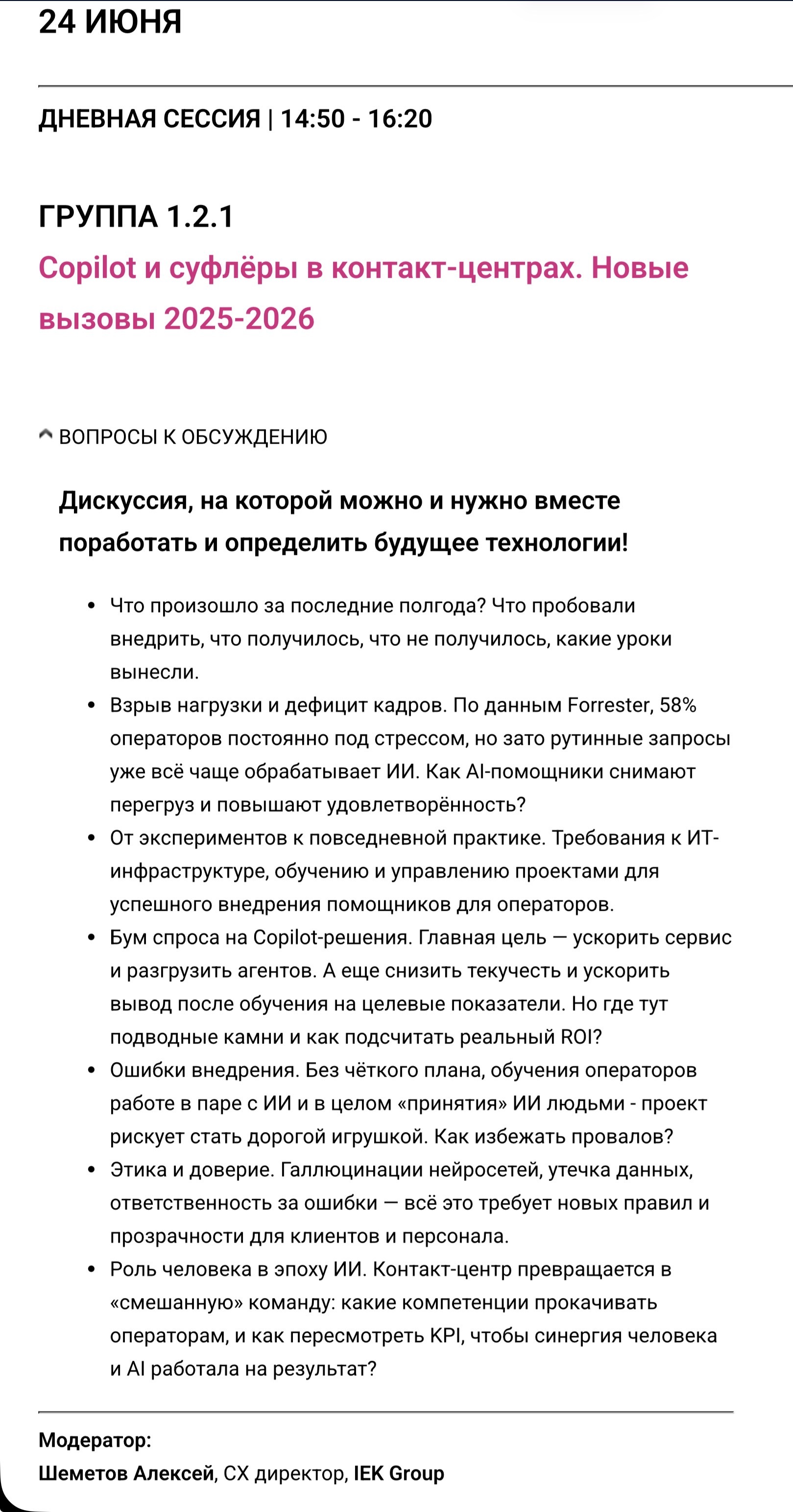 - Роль человека в эпоху ИИ. Контакт-центр превращается в «смешанную» команду: какие компетенции прокачивать операторам, и как пересмотреть KPI, чтобы синергия человека и AI работала на результат?