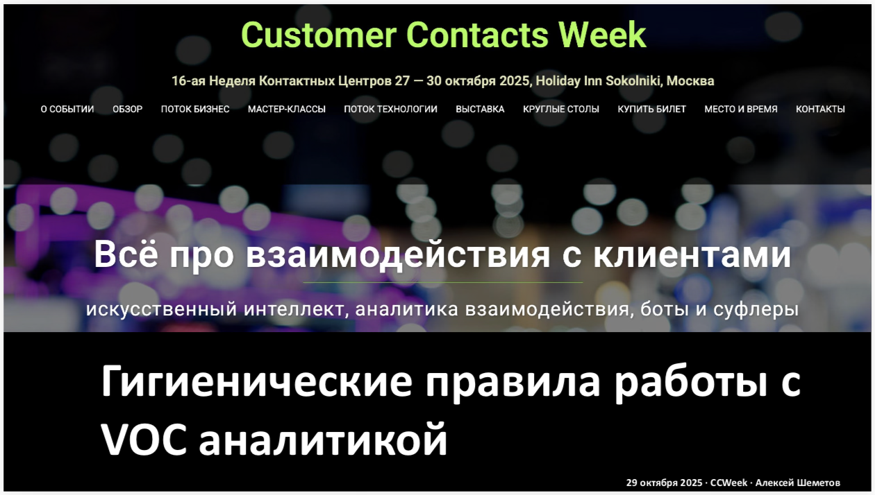 Открывающее выступление на CCWeek 2025 - поток аналитика: Гигиенические правила работы с VOC аналитикой